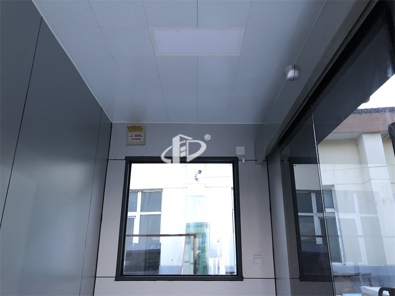 2、治安崗亭配置有:工作臺、插座、配電箱、開關、LED燈等,根據要求還可以加配:監控、空調、辦公椅、文件柜、LED顯示屏、警燈、警用裝備等。使用空間相對寬闊。崗亭內外墻板采用金屬環保板材,無毒無異味。工廠預制生產成品生產送貨上門,真正做到拎包入住。