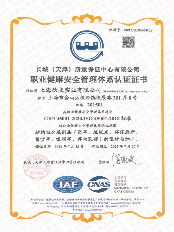 職業健康安全管理體系認證證書