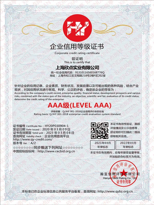 企業信用等級證書