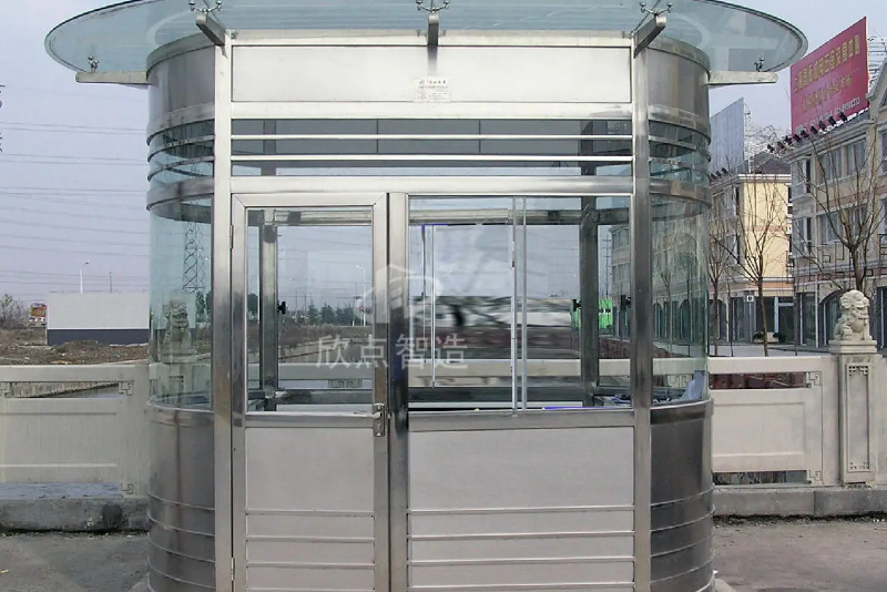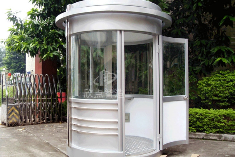 圓形崗亭。是指圍繞一個點并以一定長度為距離旋轉一周所形成的形狀。圓形在使用中相對偏少,多為定制款。因為造型工藝相對復雜,且實際可得到使用面積小。